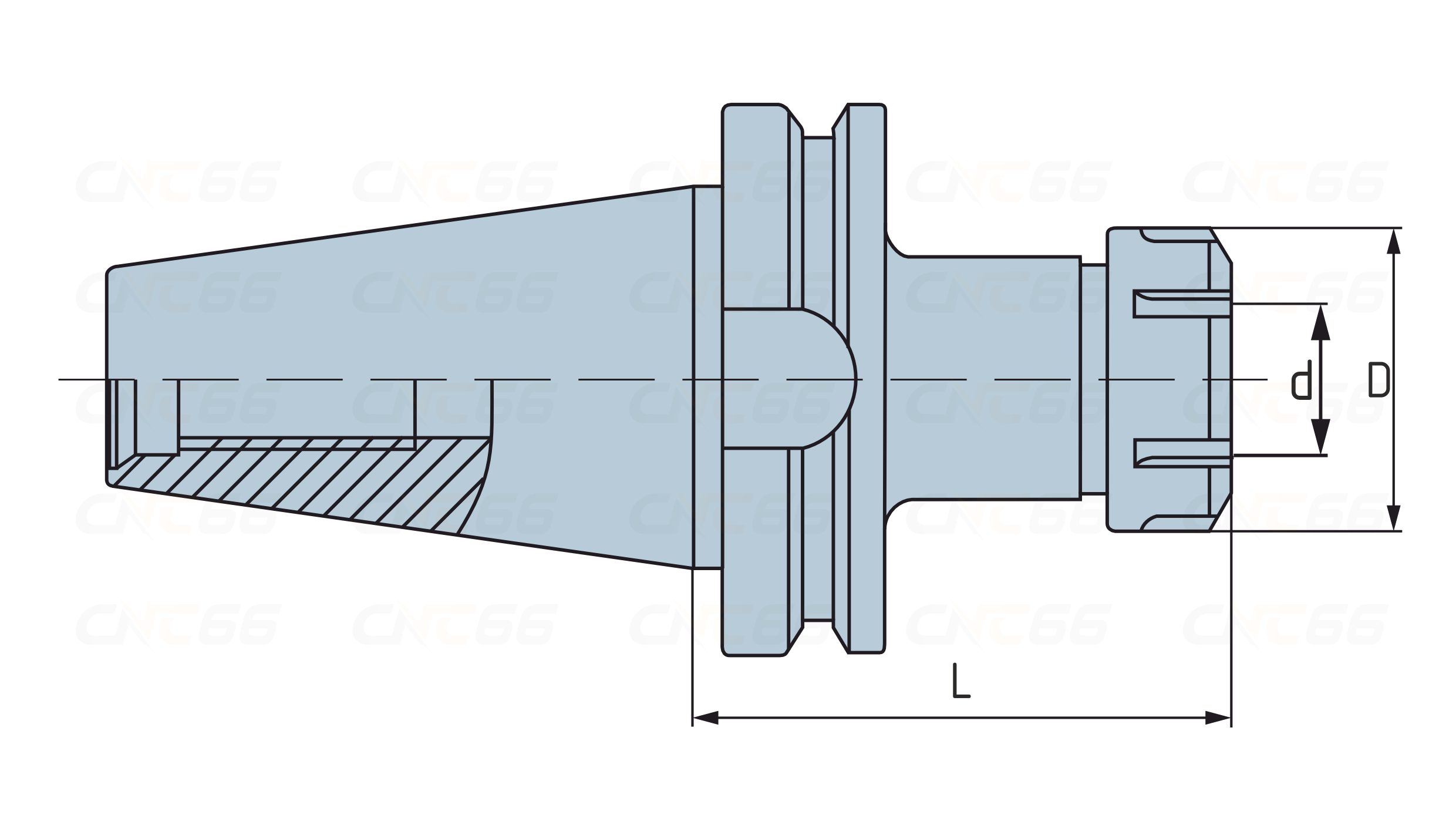 Фрезерный патрон обеспечивает надежную фиксацию режущего инструмента с цлинидрическим хвостовиком в шпинделе станка и используется в сверлильных, фрезерных станках с ЧПУ, обрабатывающих центрах. Фиксация инструмента в корпусе патрона осуществляется при помощи зажимной цанги ER и гайки типа А. В зависимости от размера отверстстия цанги в патрон устанавливается инструмент с хвостовиком. Тип подачи СОЖ: АD (через центральное отверстие).