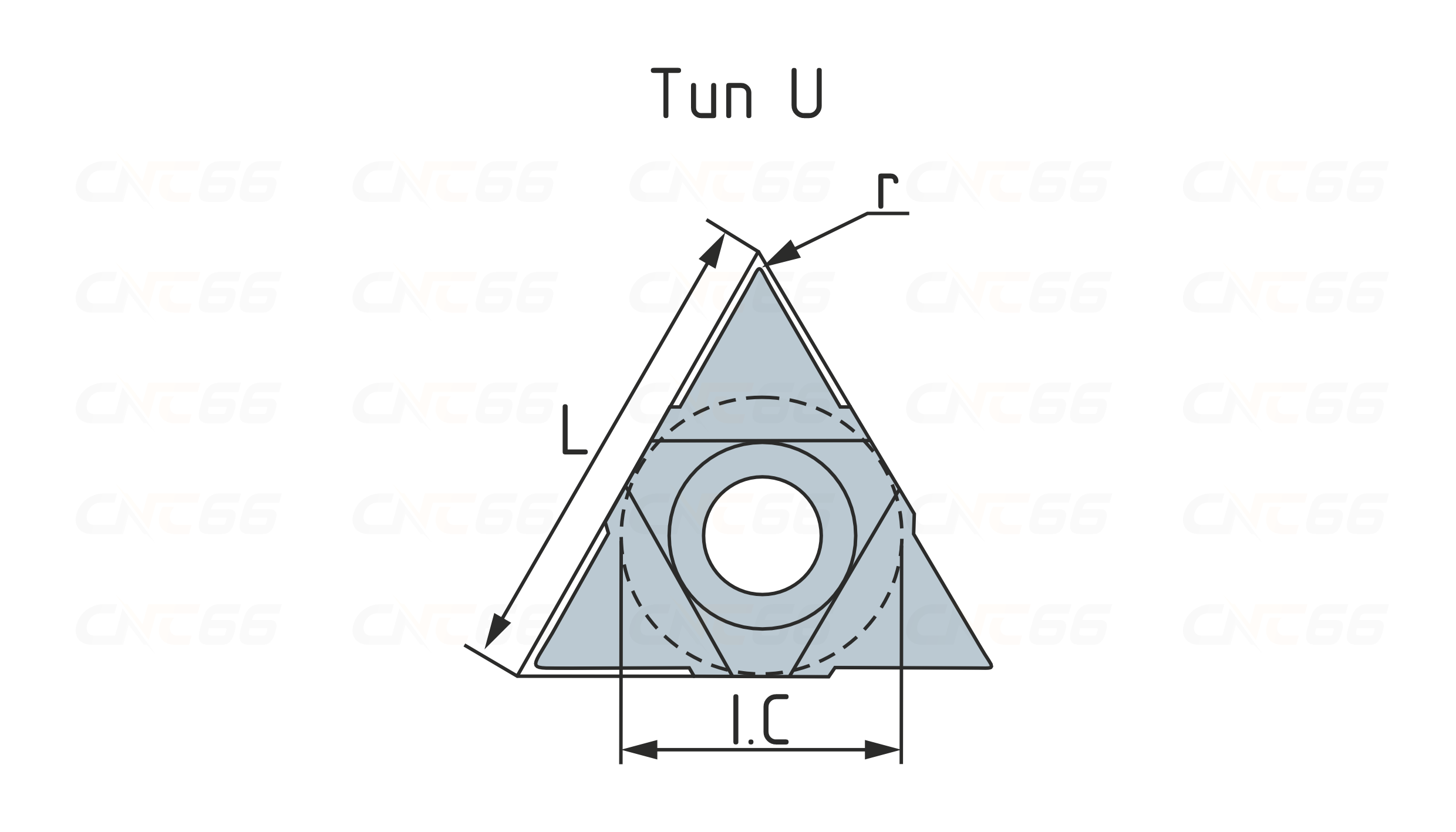 Сменные твердосплавные пластины тип U для резьбофрез с тремя режущими кромками. Неполный профиль 55° или 60°.