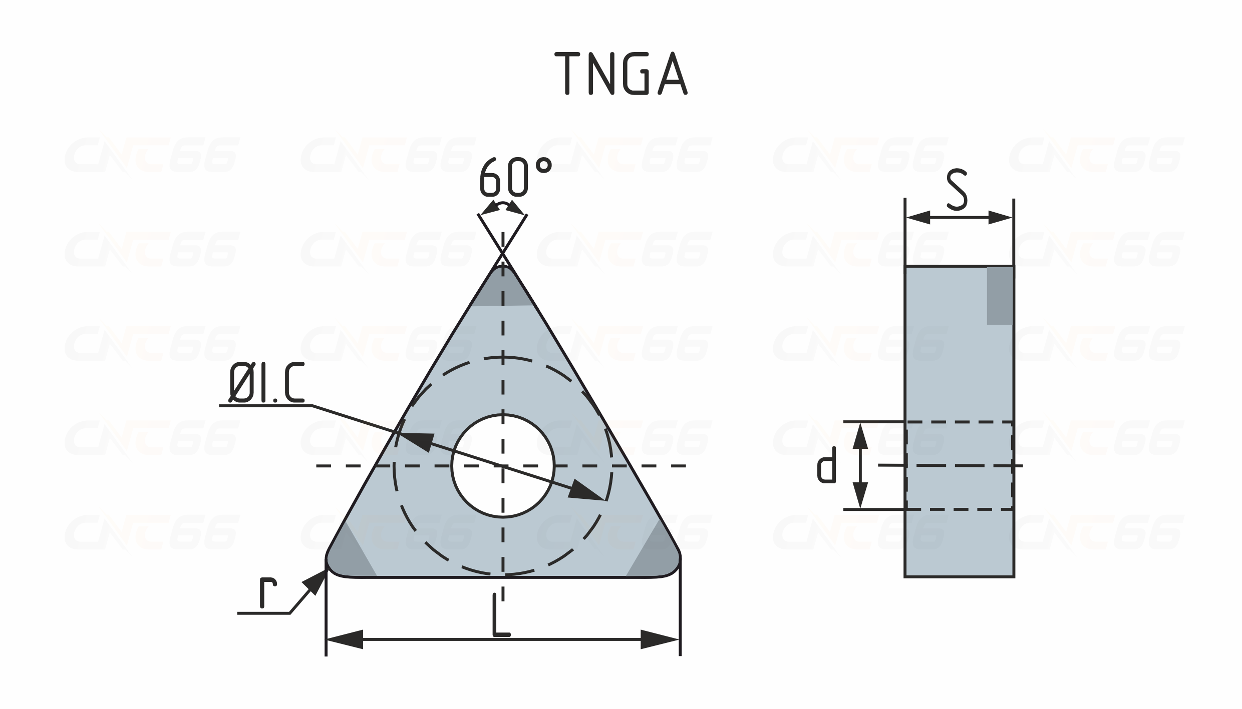 Твердосплавные сменные пластины TNGA с напайками PCBN применяются как для наружного точения (первый выбор), так и для растачивания. Форма пластины - T (треугольник 60°). Негативная геометрия, задний угол 0°. Для увеличения производительности и износостойкости пластины используются напайки из сверхтвердого материала - PCBN (поликристаллический кубический нитрид бора). Пластины TNGA устанавливаются в наружные (проходные) токарные державки CTJN DTFN DTGN MTENN MTFN MTGN MTJN MTQN PTFN PTGN PTTN WTENN WTJN WTQN, расточные державки S...-MTFN S...-MTJN S...-MTQN S...-MTUN S...-MTWN S...-PTFN.