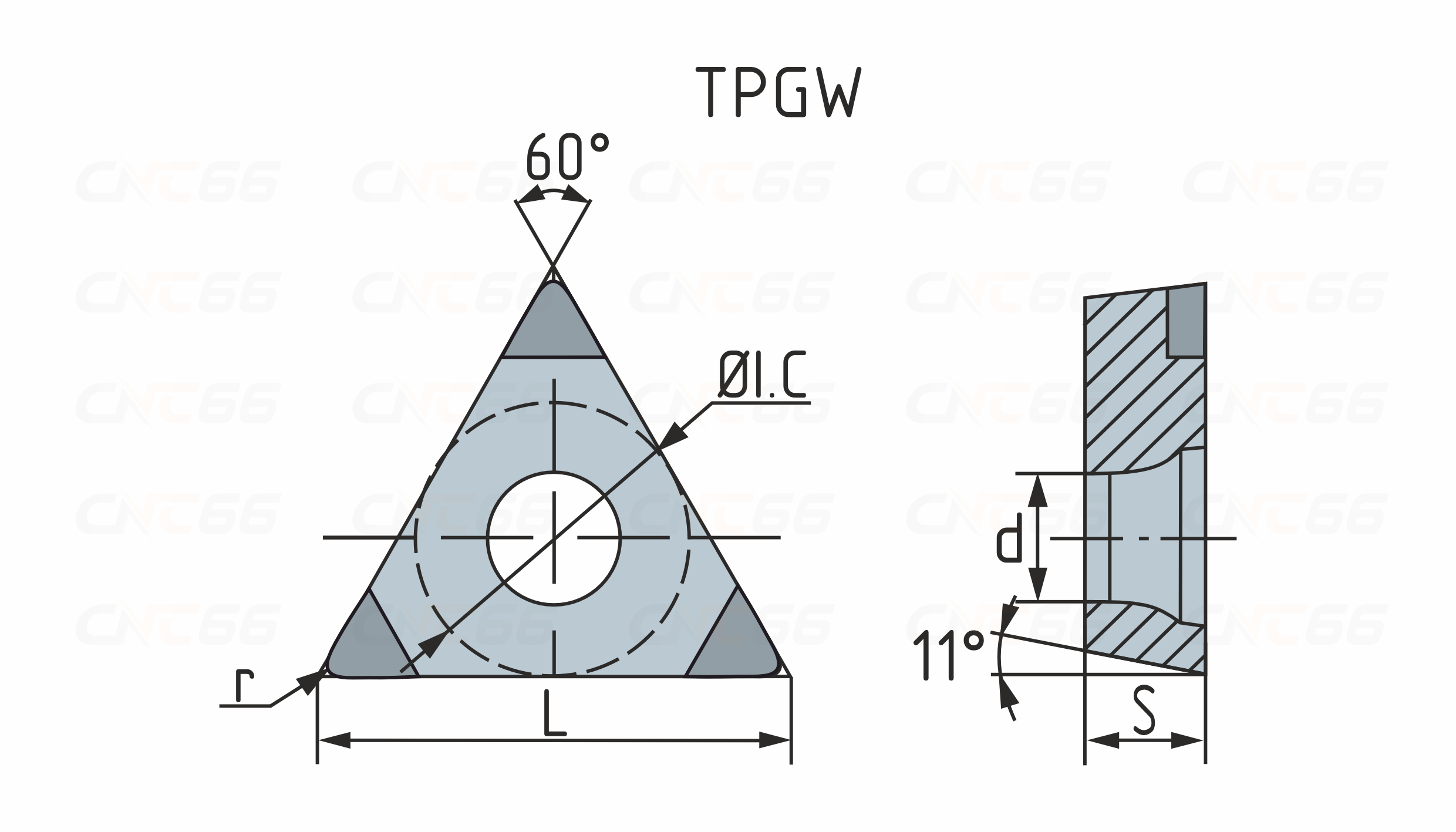 Твердосплавные сменные пластины TPGW с напайками PCBN применяются как для растачивания (первый выбор), так и для наружного точения. Форма пластины - T (треугольник 60°). Позитивная геометрия, задний угол 11°. Для увеличения производительности и износостойкости пластины используются напайки из сверхтвердого материала - PCBN (поликристаллический кубический нитрид бора).