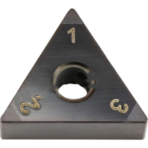 Сменная пластина используется для токарной обработки. Представляет собой основу из твердого сплава, на одной стороне которой установлены три напайки из сверхтвердого материала PCBN с защитным покрытием.
