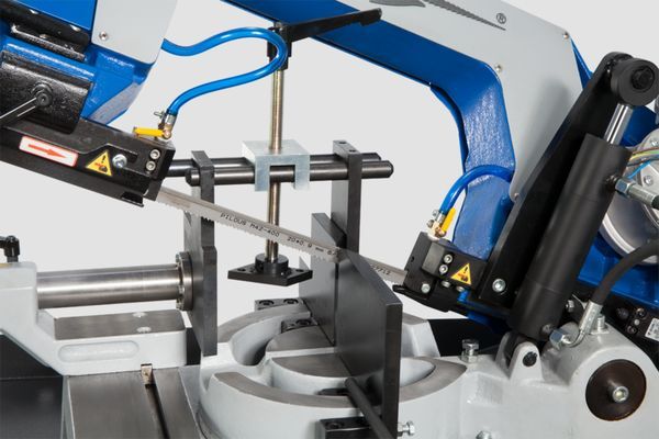 Подъем рамы осуществляется вручную, рабочая подача производится под тяжестью собственного веса рамы с возможностью простого регулирования дроссельного клапана подающего гидроцилиндра. После окончания пропила привод пилы автоматически останавливается. Станок оснащен пружинной системой, позволяющий настроить усилие подъема или опускания рамы.
