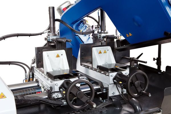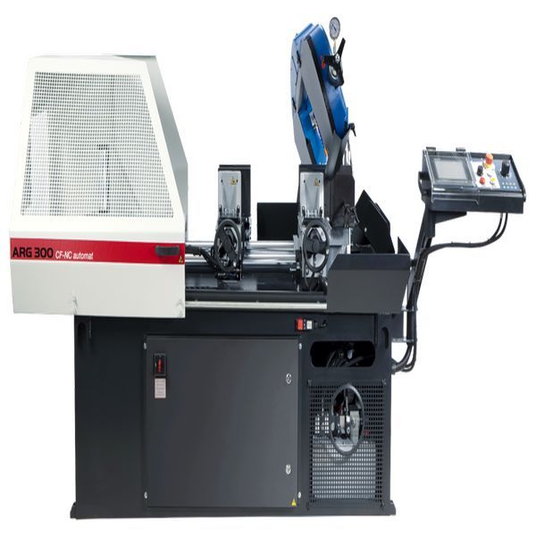 Полностью автоматический ленточнопильный станок предназначен для пиления больших серий заготовок в условиях поточного беспрерывного производства, включая обработку труднообрабатываемых материалов и заготовок с большим сплошным сечением. Станок оборудован новой системой управления и сервоприводом для подачи заготовок. Сервопривод с прецизионной ШВП обеспечивает максимальную точность и скорость подачи, даже при отрезке заготовок большой длины. Предусмотрена возможность выбора скорости подачи заготовок: 27, 42 или 50 мм/сек. Максимальная длина единичного хода равна 500 мм. Поворотный пульт управления оснащен большим цветным сенсорным дисплеем. Система ЧПУ управляет всеми функциями станка, позволяет записывать более 60 индивидуальных программ резки с беспрерывным переходом от одной к другой. Предусмотрена возможность записи комментариев к каждой программе, например, номер чертежа или имя изделия. Предусмотрена возможность задания программ процессов резки для различного числа заготовок с разными размерами при беспрерывной работе. Станок может работать как в автоматическом и полу-автоматическом, так и в ручном режимах. Зажим тисков, подача и подъем пильной рамы в заданную позицию, в соответствии с размерами деталей, производится гидравлической системой. «Плавающие» подающие тиски компенсируют изогнутость заготовок по длине и обеспечивают неизменную точность позиционирования. Регулирование давления зажима подающих и основных тисков включено в базовую комплектацию. Высокие показатели производительности достигаются также вследствие использования частотного регулирования привода вращения пилы, что позволяет плавно регулировать скорость резания от 15 до 90 м/мин, что также многократно увеличивает точность реза и стойкость ленточной пилы. Максимальная точность подачи и резки обеспечивается очень жесткой конструкцией станка, наличием массивных основных узлов, отлитых из серого чугуна и жесткой рамы подающего механизма. Крупногабаритная тумба и массивные узлы крепления рамы, большая поверхность загрузочной зоны стола делают работу станка абсолютно стабильной и точной даже при обработке очень крупных заготовок. Станок, в базовой комплектации оснащается съемным контейнером для стружки или, опционально, конвейером для сбора стружки.