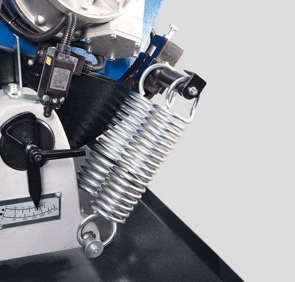 Станок оборудован гидравлической системой, с помощью которой осуществляется автоматический подъем рамы после завершения пиления. Данная система значительно облегчает работу со станком, особенно при пилении серии деталей. Величина раскрытия может быть отрегулирована в соответствии с размерами заготовки. Подача производится под тяжестью собственного веса рамы с возможностью простого регулирования дроссельного клапана гидроцилиндра. После окончания пропила привод пилы автоматически останавливается и поднимается в первоначальное положение.
