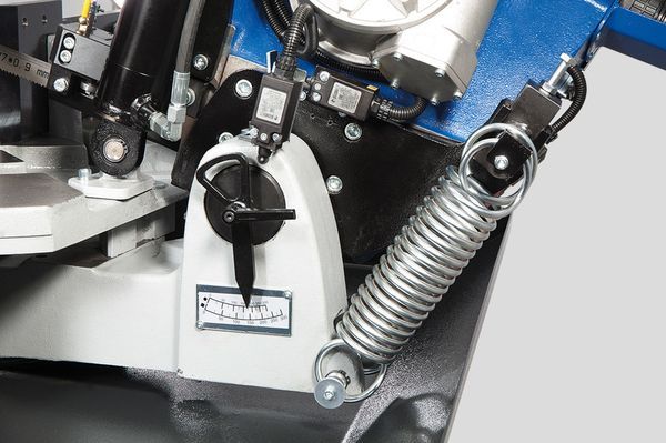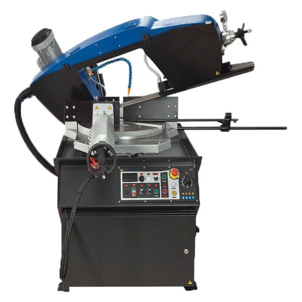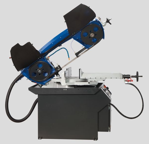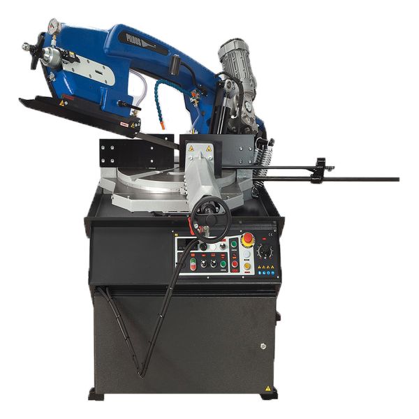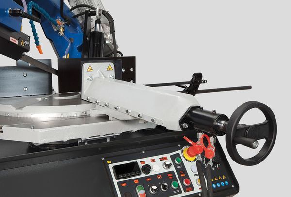 При переключении в ручной режим, можно управлять всеми функциями станка по отдельности. Благодаря наличию гидростанции, тиски могут регулироваться по усилию прижима. Высокие показатели производительности достигаются также вследствие использования частотного регулирования приводом вращения пилы, что позволяет плавно регулировать скорость резания от 15 до 90 м/мин, что также многократно увеличивает точность реза и стойкость ленточной пилы.
