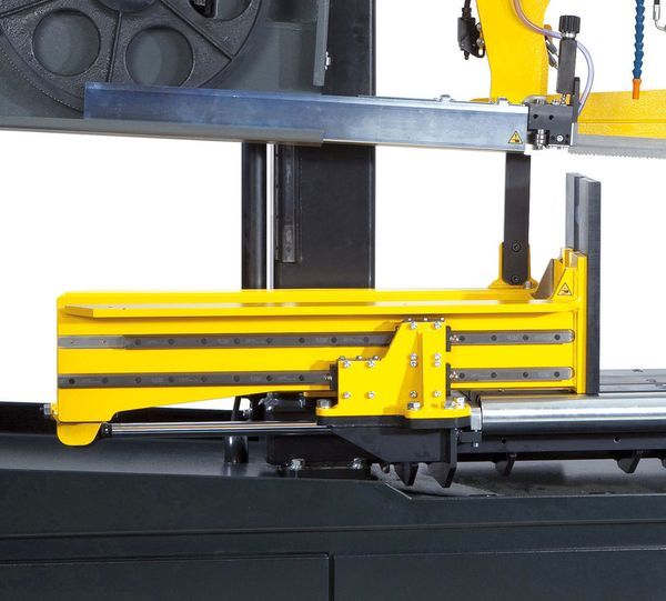 Высокие показатели производительности достигаются также вследствие использования частотного регулирования приводом вращения пилы, что позволяет плавно регулировать скорость резания от 15 до 90 м/мин, что также многократно увеличивает точность реза и стойкость ленточной пилы. Большая база станка и общий жесткий каркас гарантируют выдающуюся стабильность работы при любых нагрузках в процессе пиления.