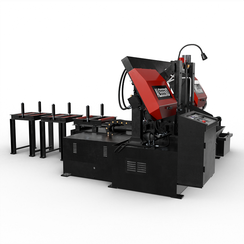 ALS5550D управляется через систему ЧПУ с пультом управления. Все настройки рабочих параметров и весь цикл резки выполняются полностью автоматически, включая опускание и подъем пильной рамы. Станок ориентирован для серийного производства.