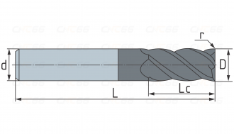 - Фреза радиусная твердосплавная 3 зуба, AL-DLC, 8х21х8х60L,R1