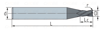 - Фреза радиусная твердосплавная 3 зуба, HRC 55, 2х6х4х50L,R05