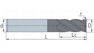 - Фреза радиусная твердосплавная 5 зубьев, HRC 55, 6х37х6х75L,R05