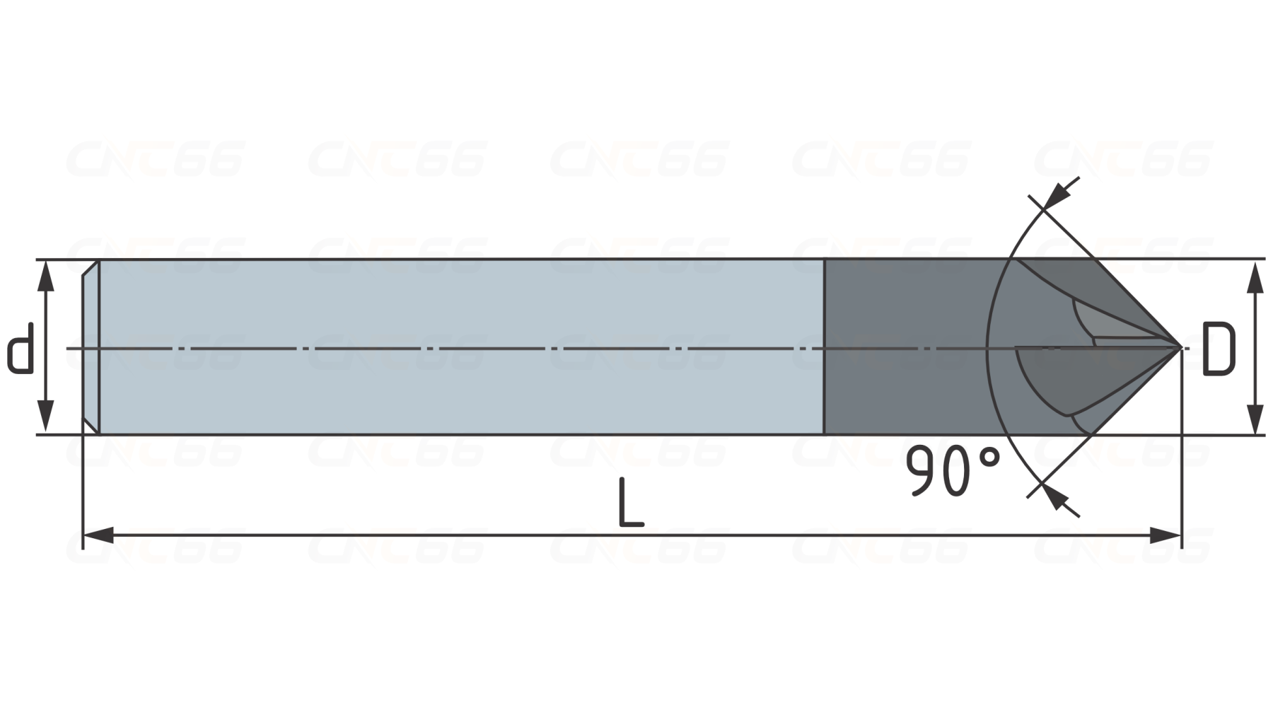 - Фреза твердосплавная фасочная 3 зуба, HRC65, 10x20x10x75L-90°