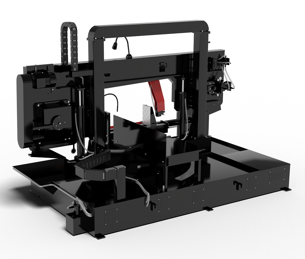 Для своевременного смазывание и охлаждения рабочего инструмента предусмотрена система СОЖ. В качестве базы станка используется станина, а в качестве режущего модуля — пильная рама. Две колонны повышенной стабильности обеспечивают плавное и точное перемещение пильной рамы в процессе обработки заготовки.