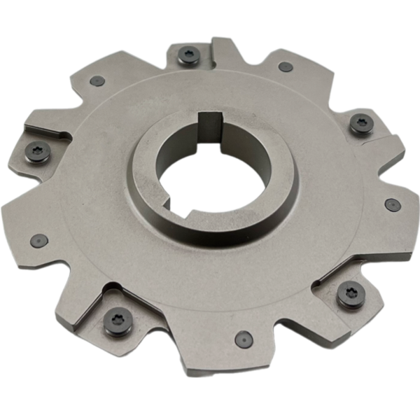 Высокоэффективный режущий инструмент, предназначенный для продольного, поперечного и фигурного фрезерования, а также обработки пазов и канавок на станках с ЧПУ и других фрезерных установках. Фреза состоит из основного корпуса в виде диска, на котором закреплены сменные твердосплавные пластины, что позволяет значительно повысить производительность и снизить затраты на инструмент, так как при износе заменяются только пластины, а не весь инструмент.